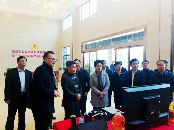 3月14日,湖南省委副書(shū)記烏蘭率省委辦公廳、省農(nóng)委等相關(guān)部門(mén)負(fù)責(zé)人一行來(lái)到湖南貴太太茶油科技股份有限公司綏寧產(chǎn)業(yè)園考察調(diào)研,烏蘭對(duì)貴太太在高端食用油領(lǐng)域取得的成績(jī)高度贊譽(yù),并鼓勵(lì)貴太太進(jìn)一步提質(zhì)增效,做優(yōu)做強(qiáng),打造國(guó)內(nèi)一流的茶油品牌!